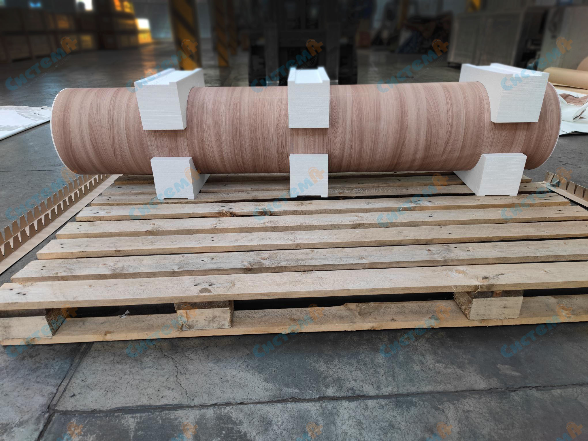 Пенополистирол — очень легкий материал, который, тем не менее, легко выдерживает большие нагрузки. Вес одного рулона линолеума составляет 200 кг, однако защитные элементы отлично показали себя в работе, не утяжелив при этом сам груз.